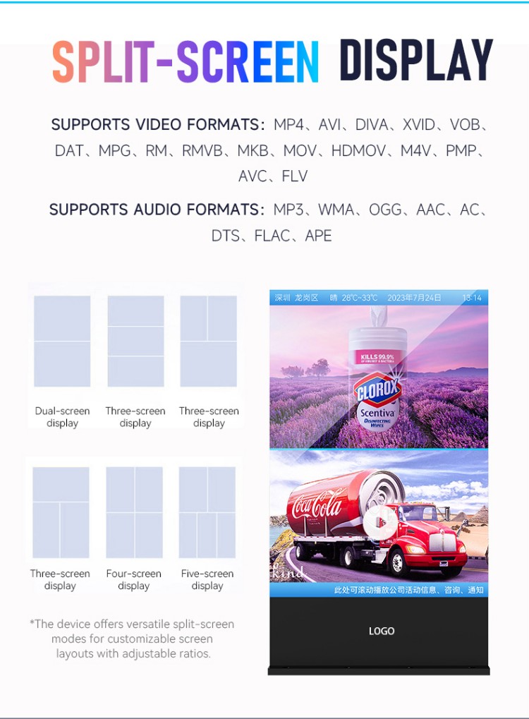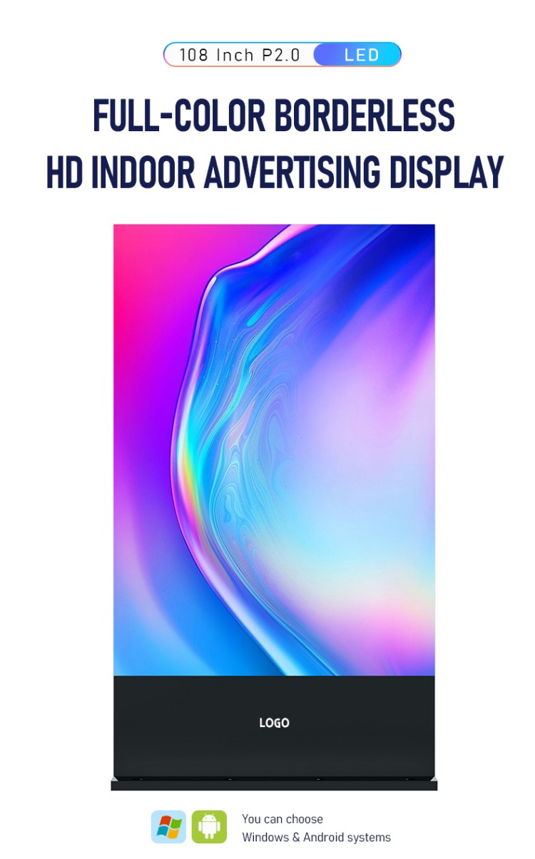 96–108 英寸室内 P2/P2.5 LED 立式显示屏具有高亮度和小间距分辨率,可呈现惊艳的清晰度。这些立式数字标牌屏幕是广告亭、电梯和室内展示的理想之选,可提供生动的动画、流畅的视觉效果和卓越的性能,助力打造极具影响力的商业推广和品牌展示。