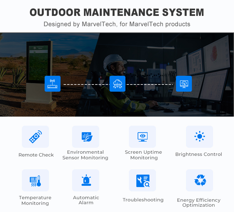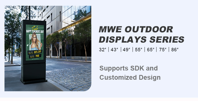 The Outdoor Single-Sided LCD Digital Signage delivers high-brightness visuals for clear viewing even in sunlight. It withstands harsh weather conditions. Ideal for 24/7 outdoor advertising and information display, it supports remote content updates and intelligent temperature control for stable, energy-efficient performance.